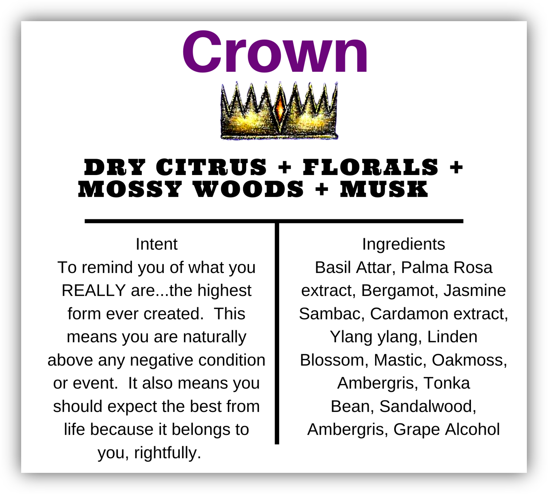 Crown, le parfum original de style « vintage », est une interprétation artistique de la structure chyprée la plus célèbre. Il contient des composants utilisés dans les parfums du début du XXe siècle, Aramis, Cabochard, Men's Club, Obsession, Opium et Mais Ou de Bourjois
